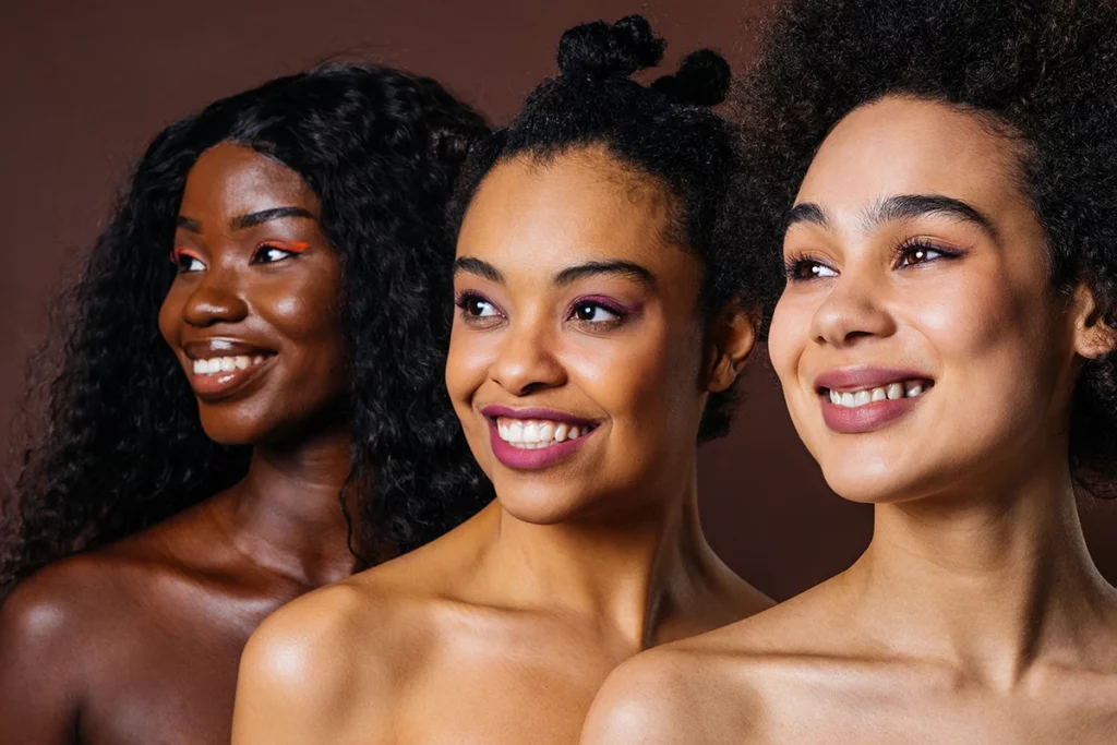 - Adaptation aux besoins spécifiques : Les peaux colorées, souvent déshydratées, compensent la perte d’eau par une sécrétion excessive de sébum. Les soins appropriés nettoient en douceur, rétablissent l’équilibre hydrique et respectent la balance entre eau et sébum.